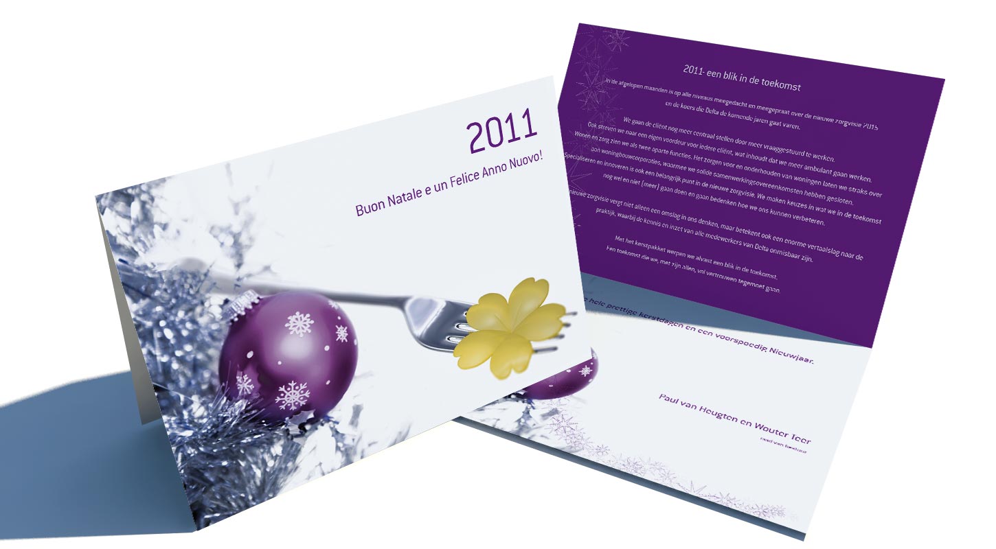 Christmas card accompanying staff christmas gift for Delta Psychiatric Centre. The gift contained several Italian pasta products. The Delta logo was rendered as a piece of pasta.Software: Autodesk Maya, Adobe Photoshop, InDesign