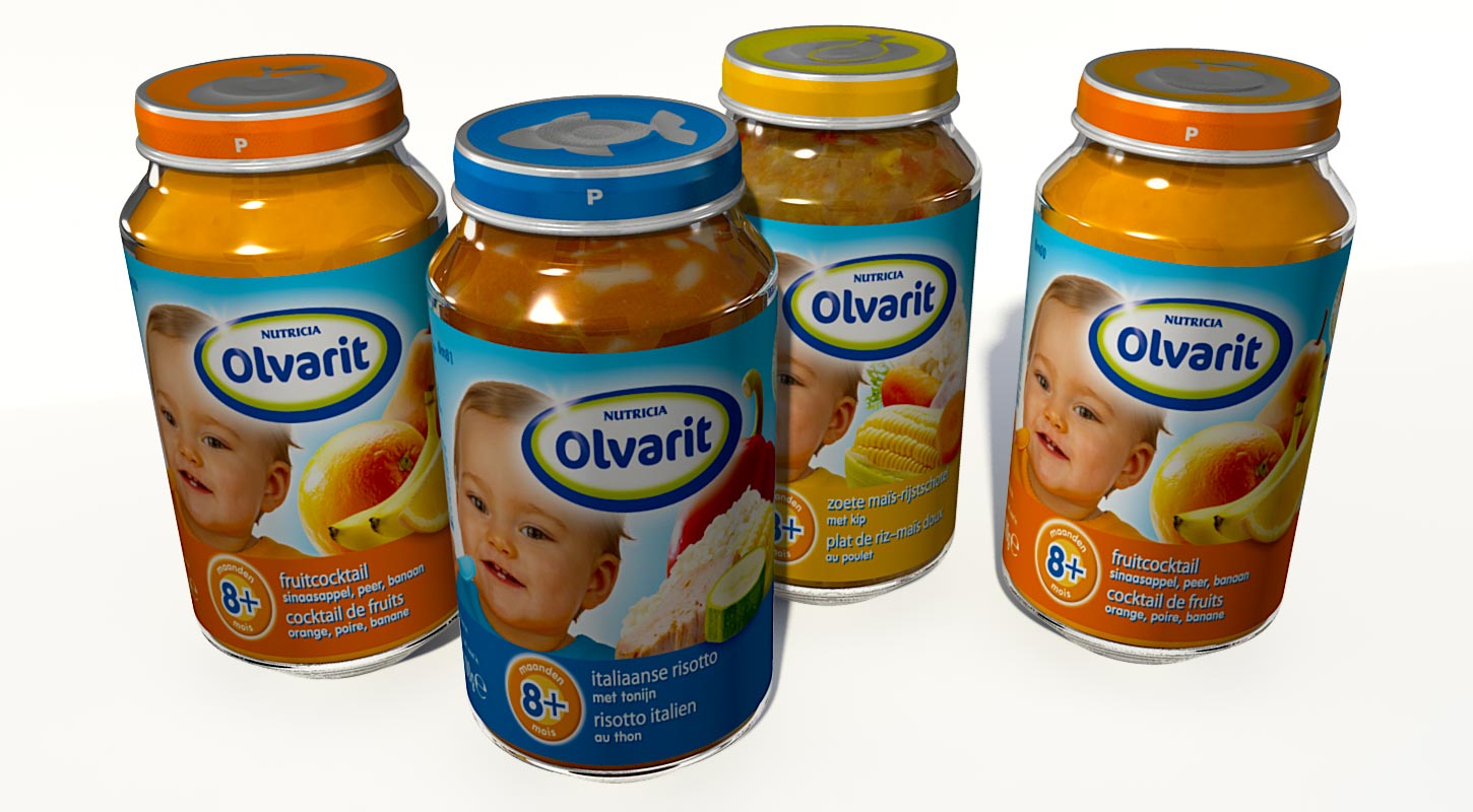 3D packshot for Olvarit baby food.Software: Autodesk Maya