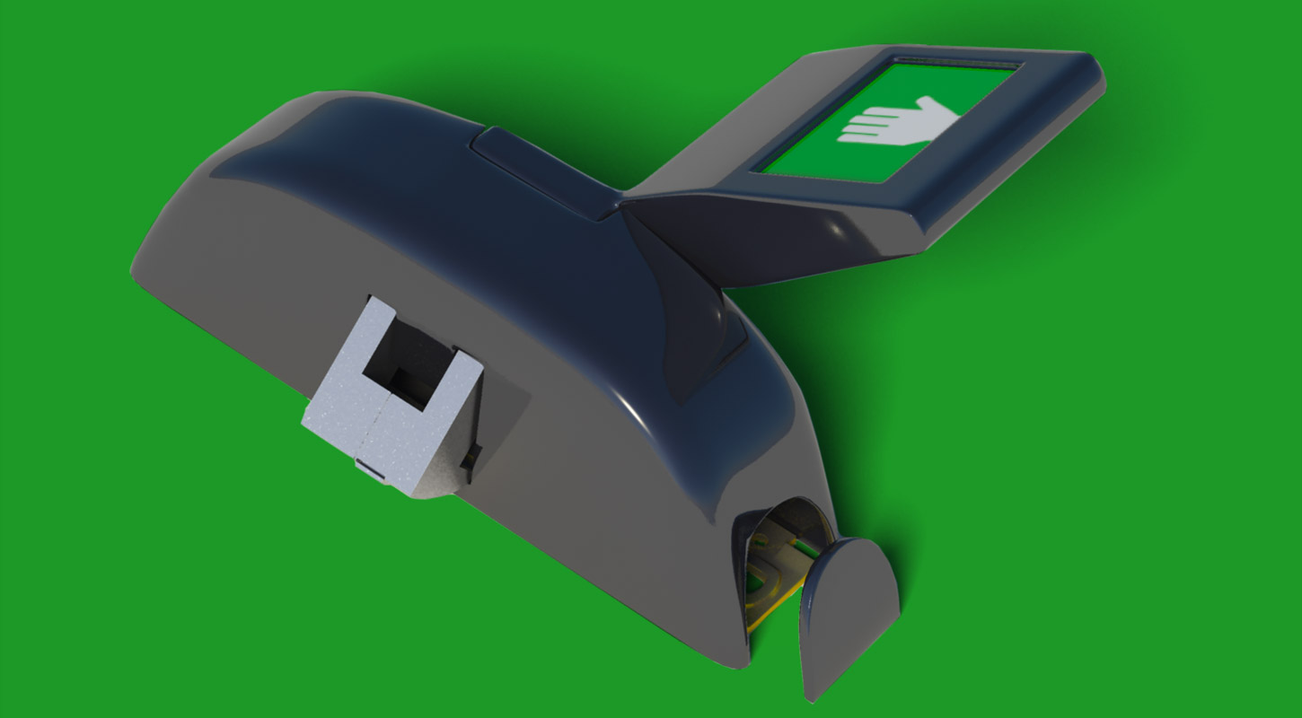 Product illustration for SecuScape emergency door opening.Software: Autodesk Maya, Adobe Photoshop