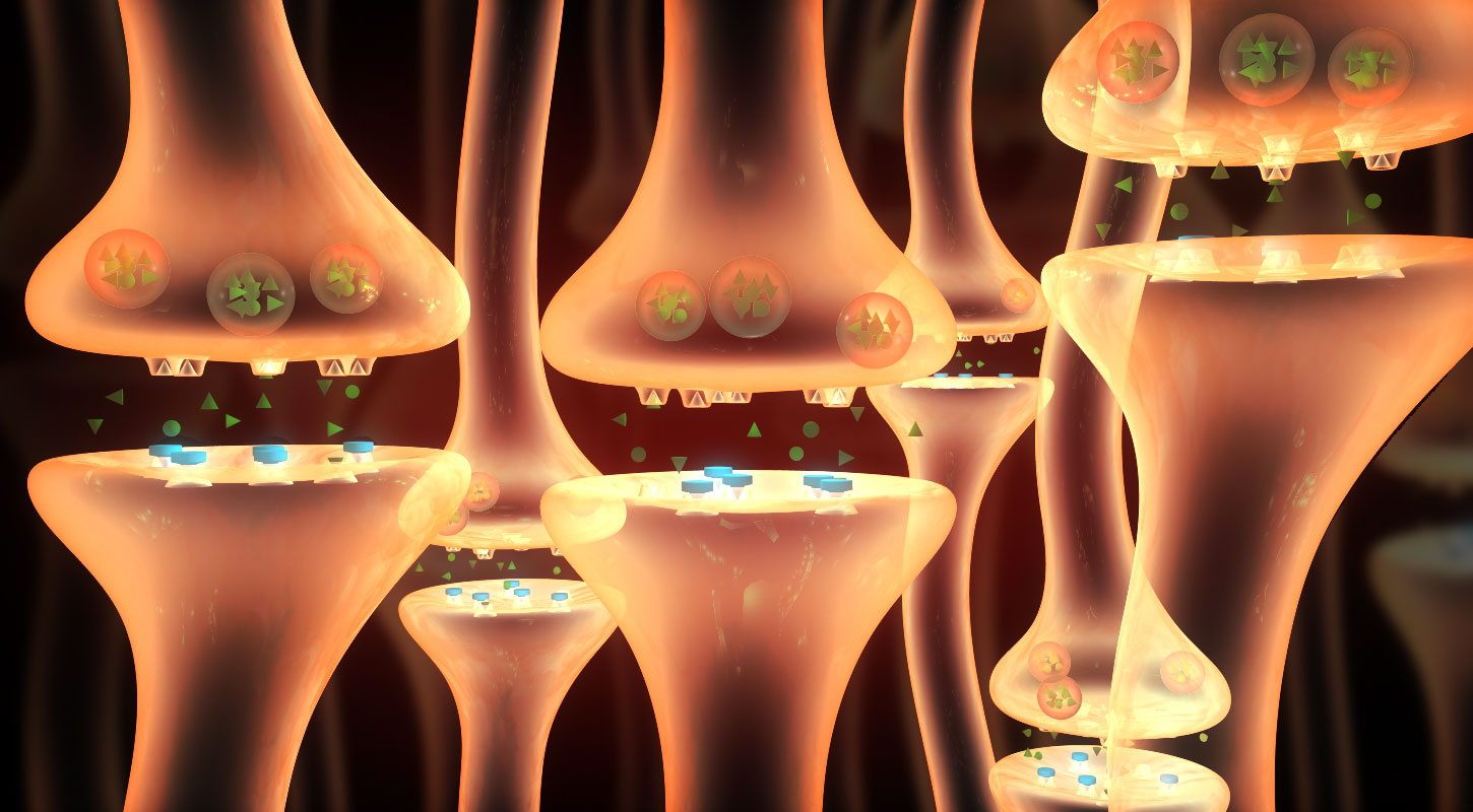 Representation of the working of neuro inhibitors on the synapses.Software: Autodesk Maya, Adobe Photoshop